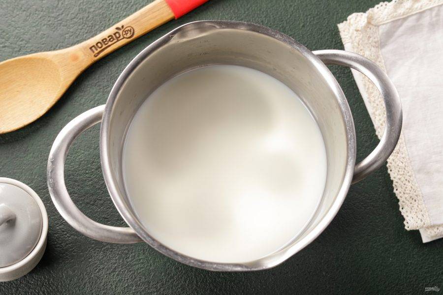 В небольшую кастрюльку, желательно с толстым дном, налейте воду и молоко.