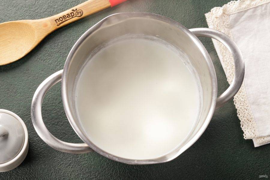 Поставьте кастрюльку на огонь и нагревайте до кипения. Следите, чтобы молоко не убежало.
