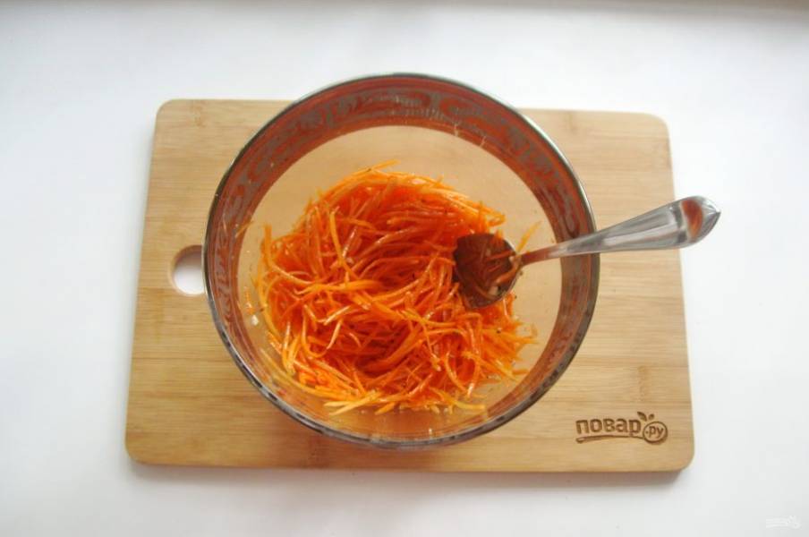 Морковь очистите, помойте и натрите на терке для корейской моркови.