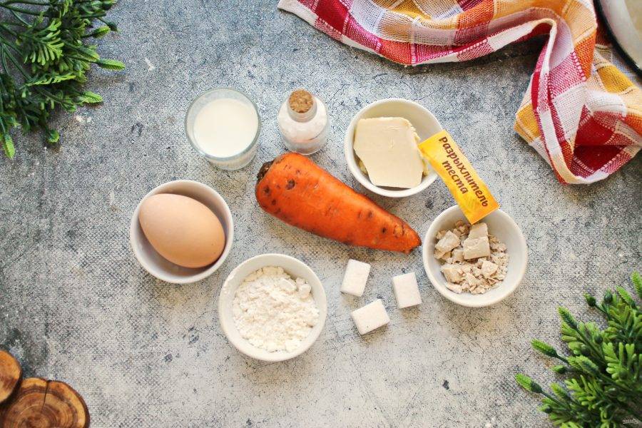 Подготовьте все необходимые ингредиенты для приготовления морковного теста. Морковь почистите и вымойте.