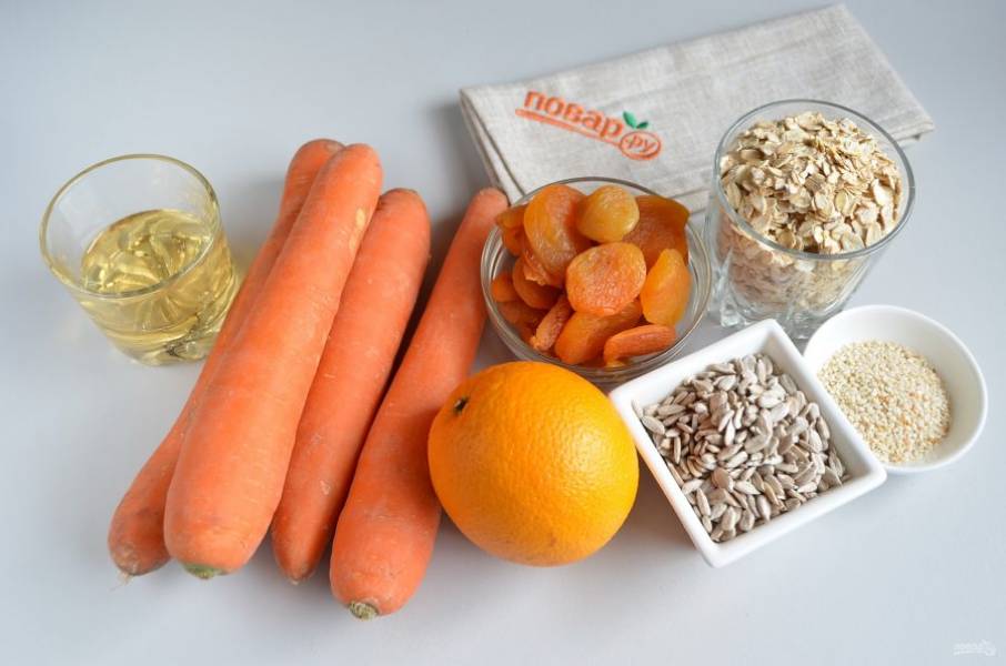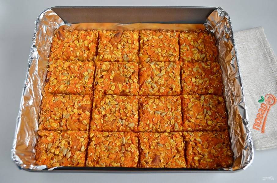 Морковные квадратики с курагой, семечками и овсяными хлопьями