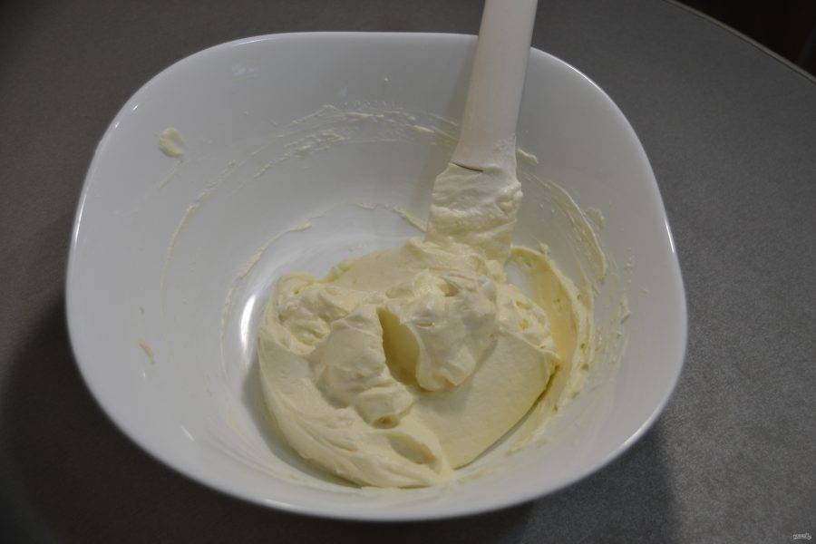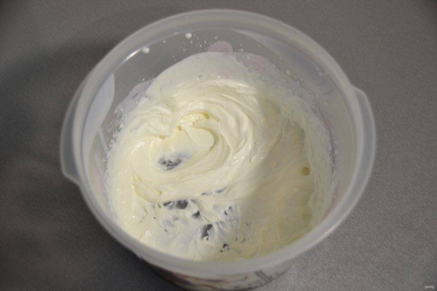 Взбейте крем, но слишком не усердствуйте, чтобы его не перебить.