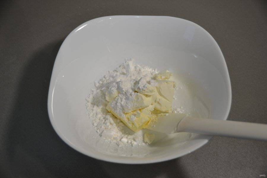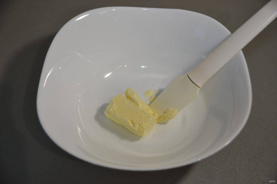 Пока выпекается корж, займитесь кремом. В емкость для взбивания выложите размягченное сливочное масло.