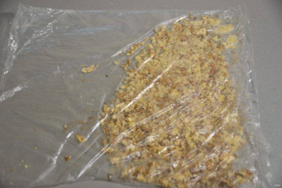 Измельчите в мелкую крошку, но не слишком усердствуйте, чтобы не превратить их в муку.