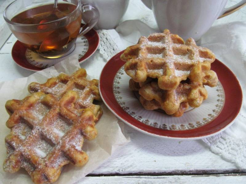 Готовые вафли чуть остудить и посыпать сахарной пудрой. Приятного аппетита!