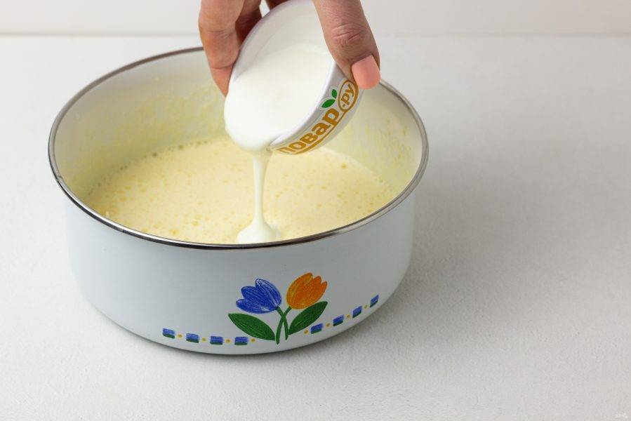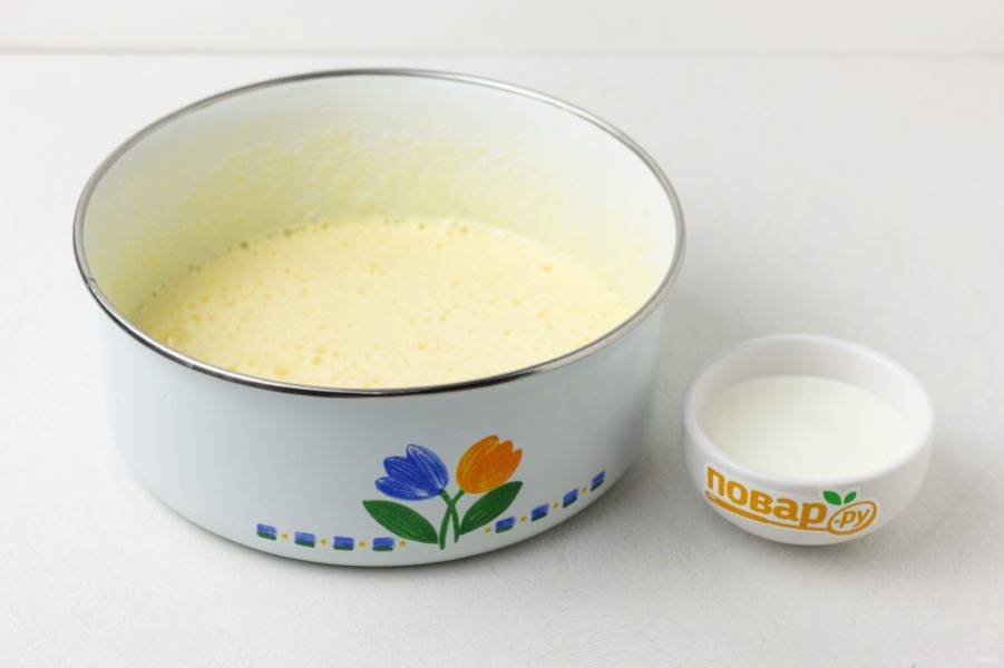 Яйца взбейте с сахаром.