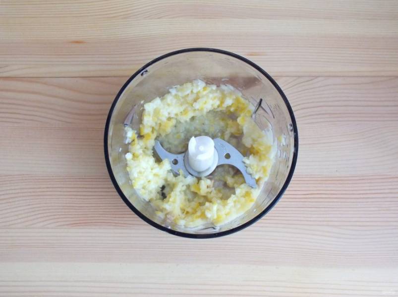 Далее с лимона слейте воду, переложите в блендер и пробейте в мелкую кашицу.