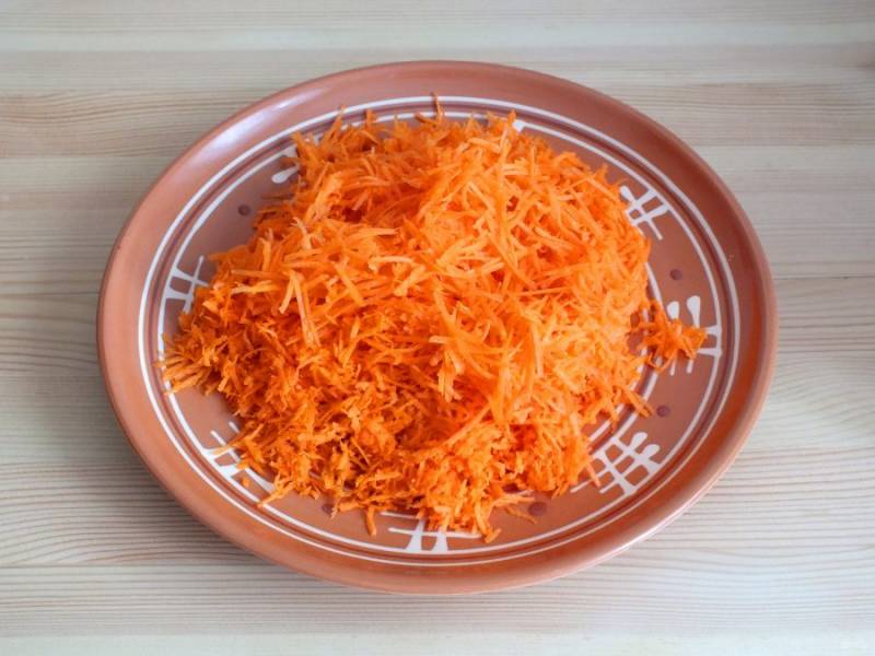 Морковь натрите на мелкой терке.
