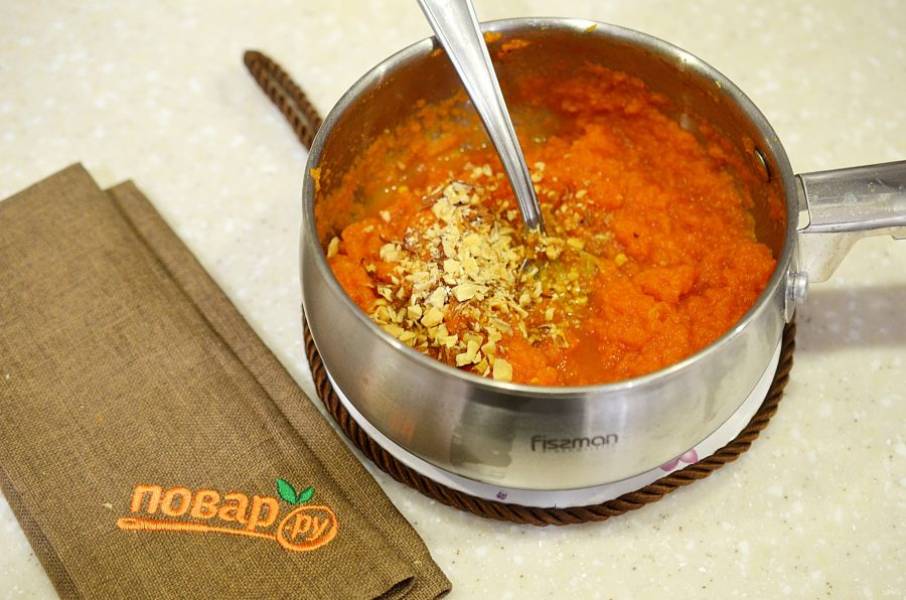 7. Добавьте коньяк, орехи, перемешайте и разложите по баночкам.
