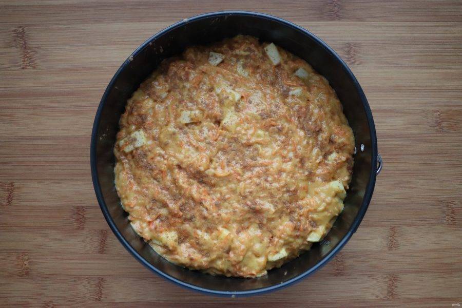 Выпекайте пирог в разогретой до 180 градусов духовке 30-35 минут или до сухой шпажки. Готовый пирог немного остудите, а затем выньте из формы. Верх пирога можно украсить сахарной пудрой. Вкусный и ароматный морковный пирог с яблоками готов. Приятного аппетита!