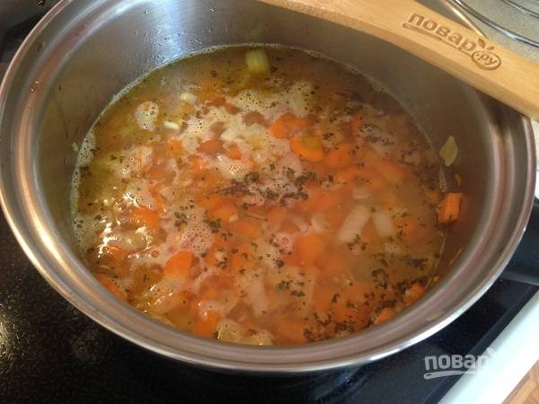 8. Варим на среднем огне до готовности булгура. Время варки указано на упаковке. Мой булгур варится 10 минут, но в супе я варила его 15 минут.