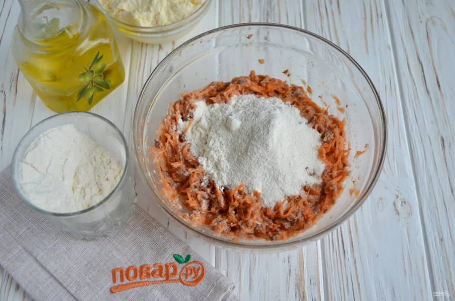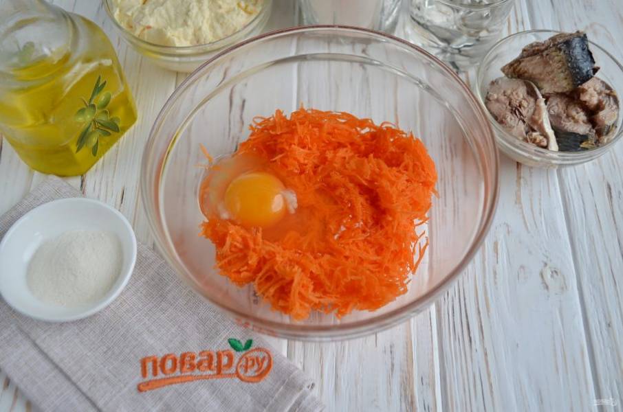 Смешайте морковь с яйцом.