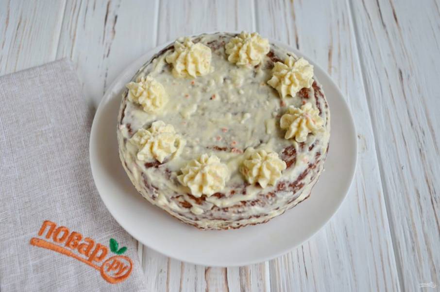 Последний штрих: вставьте кусочки вареной или сырой моркови. Морковный торт "Рыжий дружок" готов! Приятного!