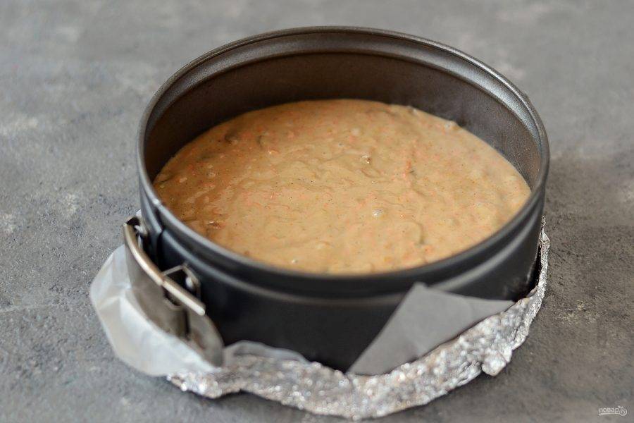 Выложите тесто в форму для выпечки. Выпекайте в заранее разогретой до 180 градусов духовке 40-50 минут.