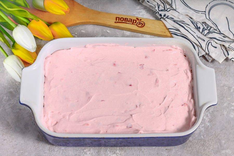 Выложите крем в широкую прямоугольную форму и поместите на 1,5-2 часа в морозилку.