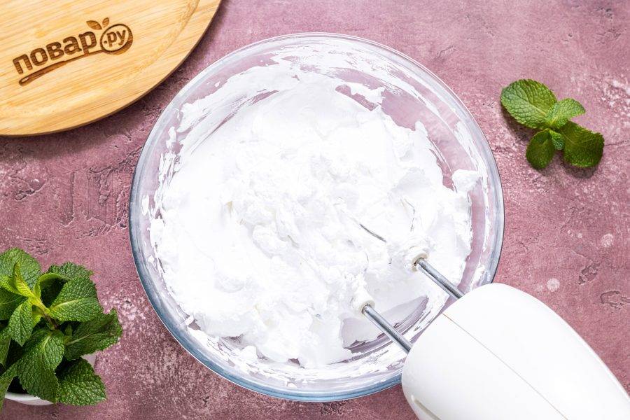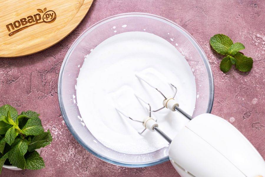 Затем увеличьте и взбивайте до устойчивых пиков.