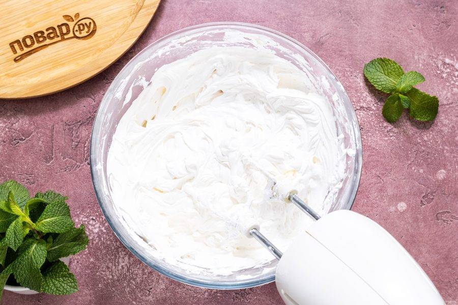 Начните взбивать миксером в начале пару минут на небольшой скорости.