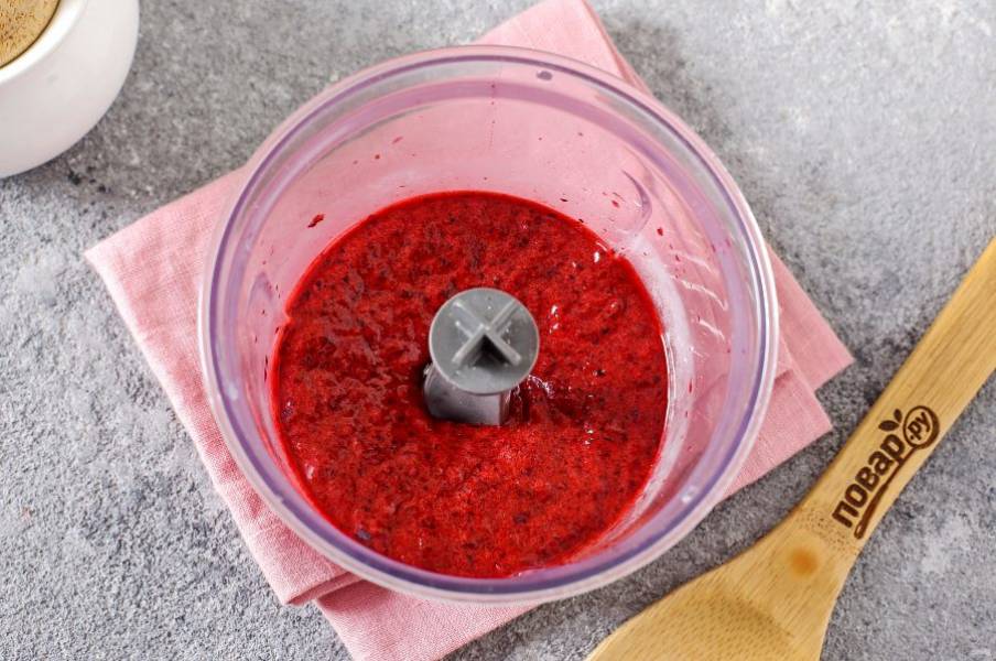 Ягоду переберите, промойте и переложите в чашу блендера.