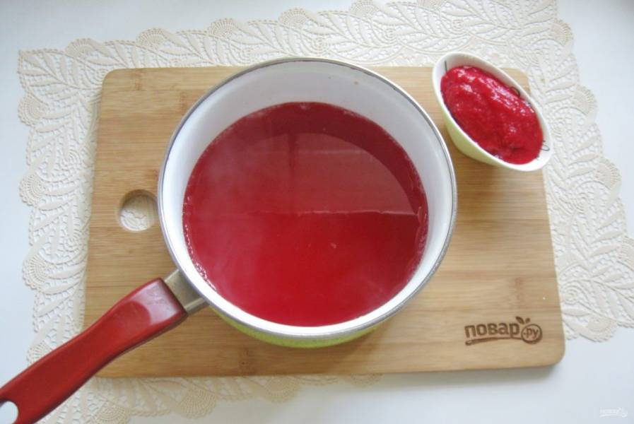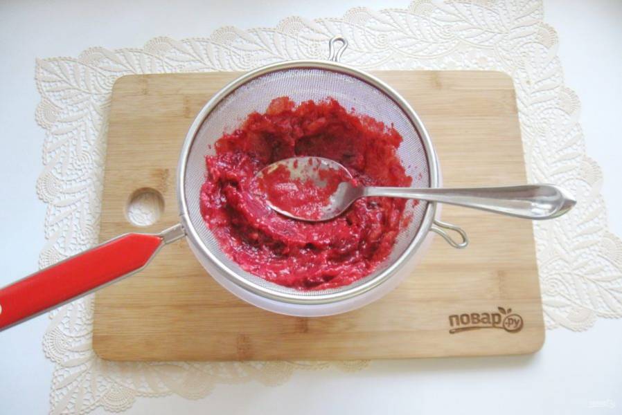 Протрите мякоть и сок кизила через сито.