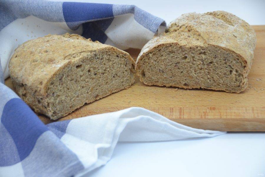 После того, как хлеб полностью остыл, его можно резать. Хлеб получился ароматным, вкусным и очень полезным. Приятного аппетита!