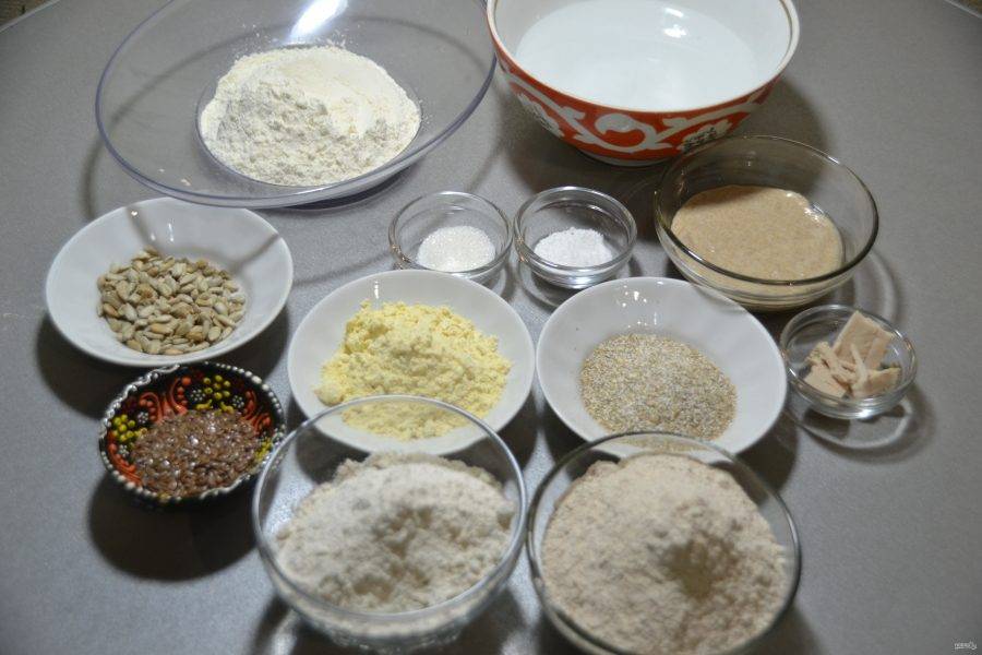 Рекомендую начать процесс замеса хлеба вечером, чтобы продолжить выпекание утром. Хлеб с длительной расстойкой получается особенно ароматным и вкусным. Для того, чтобы получить влажную среду в духовке, поставьте на нижнюю решетку сковороду с водой, можно сбрызнуть стенки обычным пульверизатором или бросить вниз несколько кубиков льда.Набор круп и видов муки может быть самым разным, главное, соблюдать пропорции воды и муки. При необходимости, количество воды и муки можно отрегулировать. В случае отсутствия ржаной закваски, увеличьте количество дрожжей на 5 грамм, муки на 30 грамм, воды на 35 грамм.