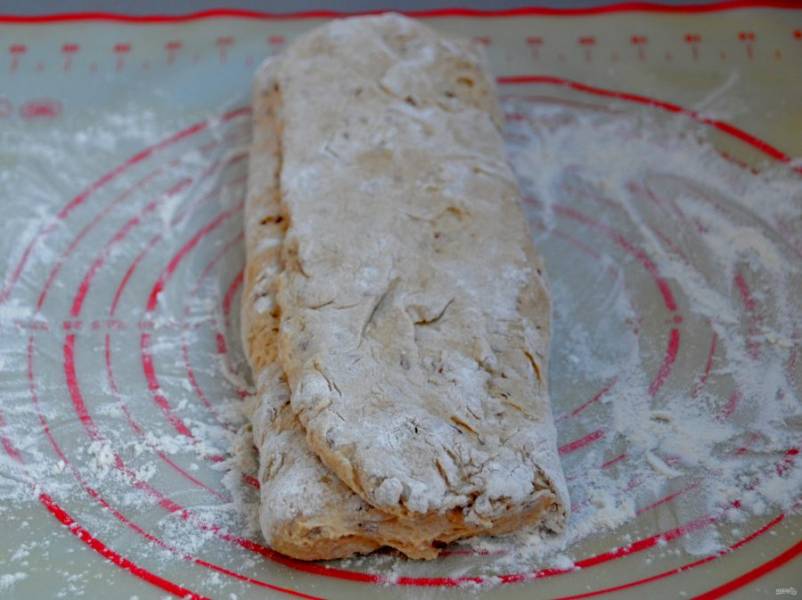 Сложите тесто таким образом, как на фото: правую и левую части теста выложите друг на друга, на 1/3.