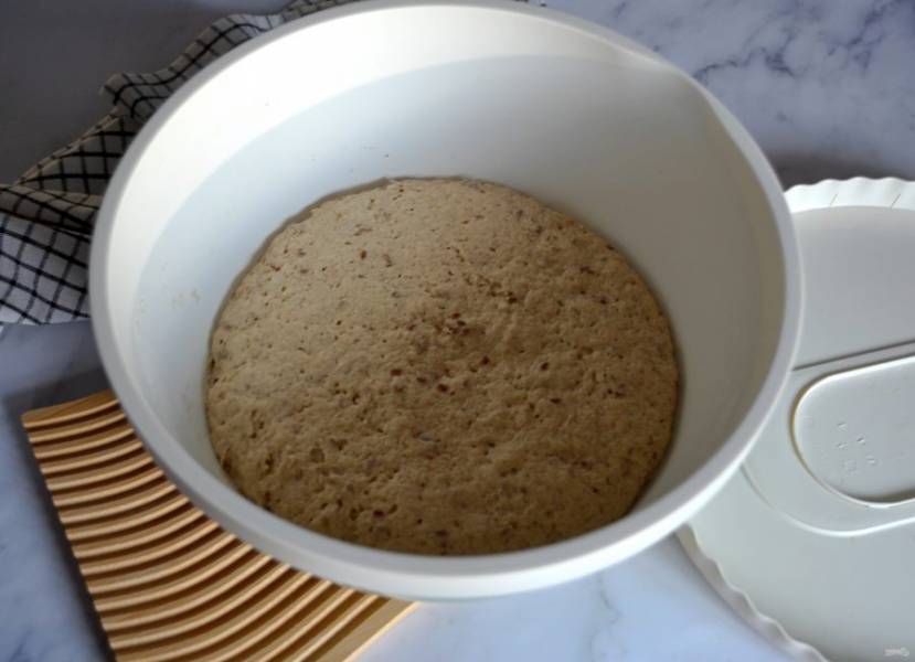 Замесите руками тесто, вымешивать не надо, просто соедините все ингредиенты. Накройте, оставьте при комнатной температуре на 10-12 часов.