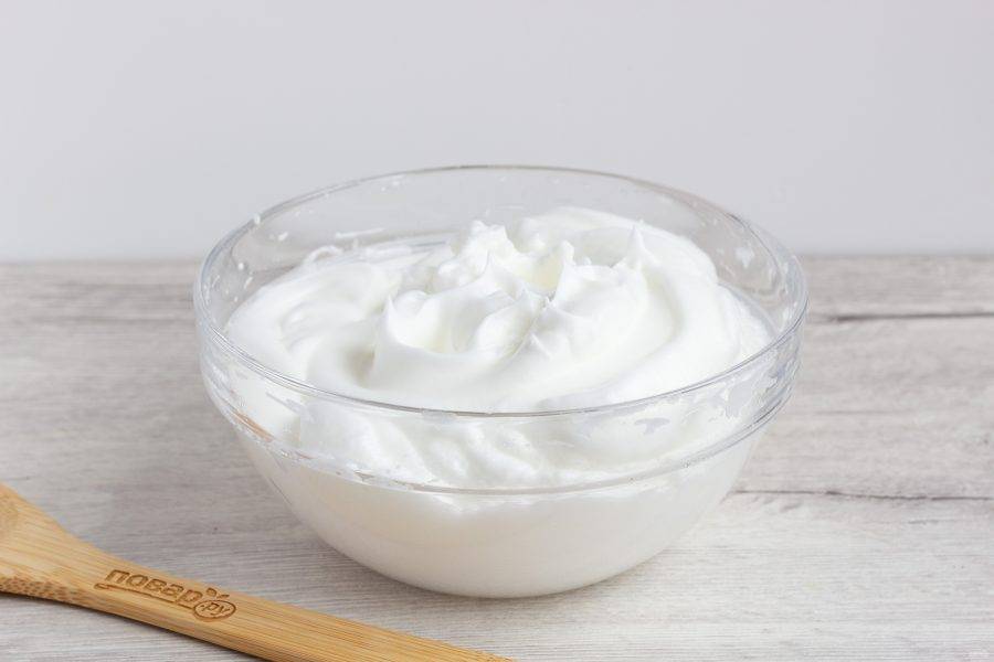 Лопаткой, движениями снизу вверх, вмешайте белки в масляную массу.