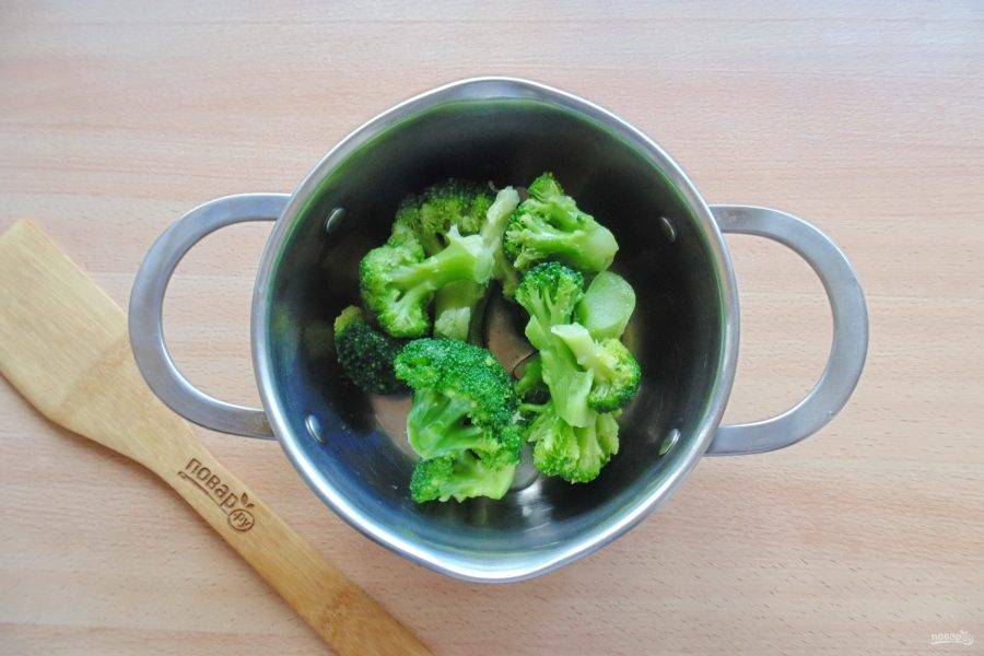 Варите брокколи в подсоленной воде до мягкости 7-8 минут. После воду слейте.