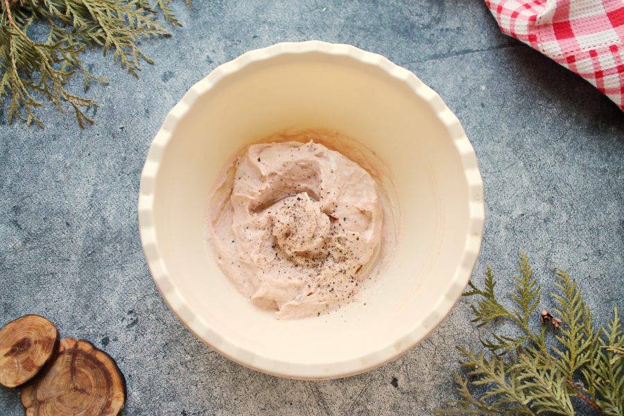 Готовый мусс доведите до вкуса при помощи соли и перца. Готовый мусс из малосольной горбуши сразу подавайте.