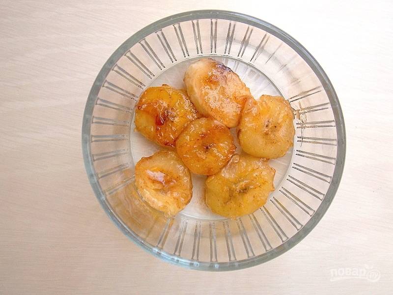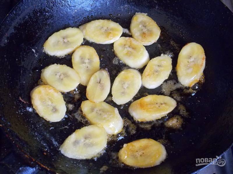 Смешайте сахар с корицей, насыпьте на сковороду и нагрейте на медленном огне. Обжарьте бананы с двух сторон по 1-2 минуты.