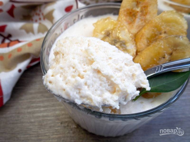 Нежный мусс со вкусом подтаявшего мороженого, а глазированные бананы и аромат корицы завершают дело. Обязательно попробуйте этот нежнейший десерт.