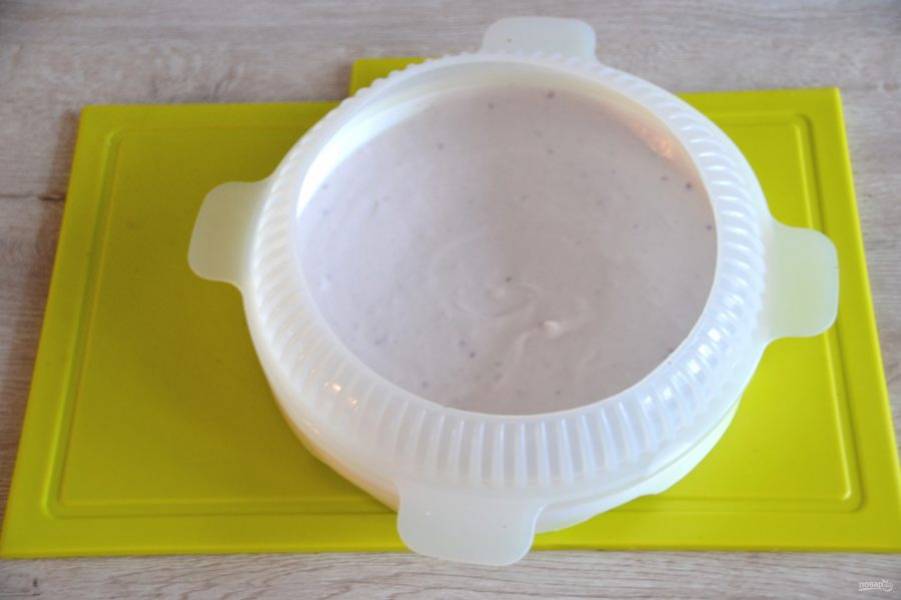 Пробейте массу блендером, вводите блендер под углом, при взбивании не вынимайте из стакана, чтобы не образовались пузырьки.