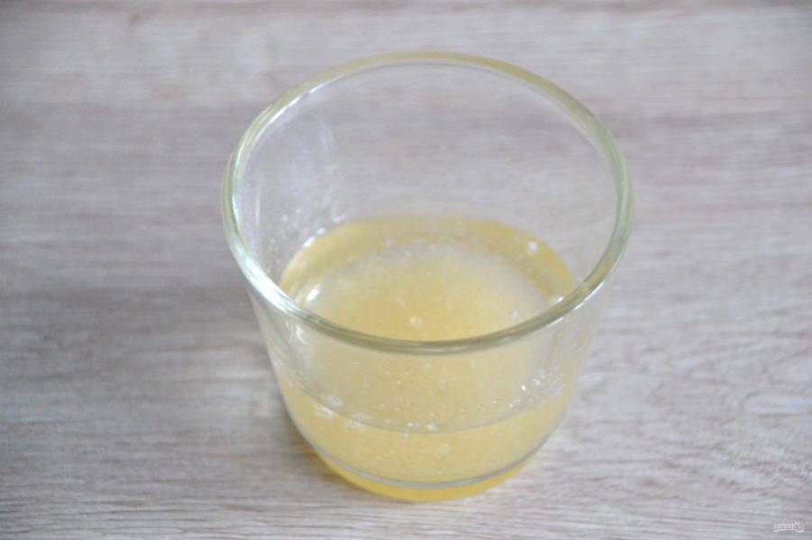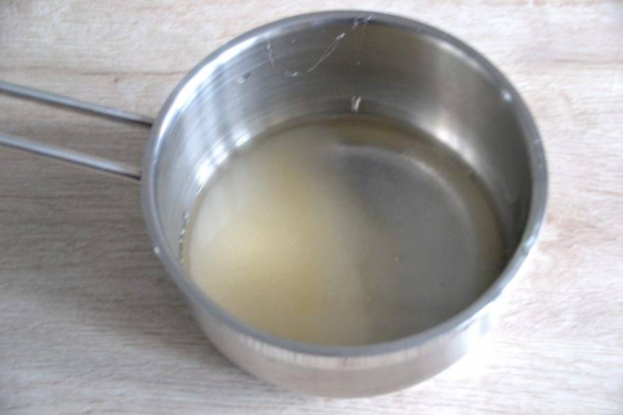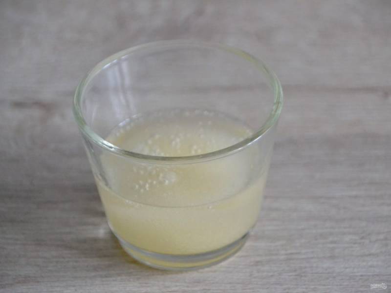 Для приготовления смородинового конфи замочите 7 грамм желатина в 42 мл. воды.