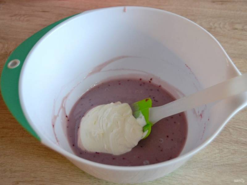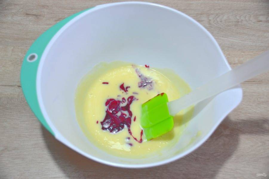 Добавьте в смородиновую массу слегка подогретую в микроволновой печи желатиновую массу, смешайте до однородности.