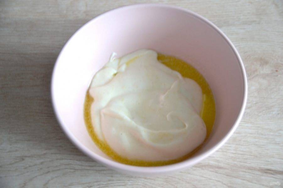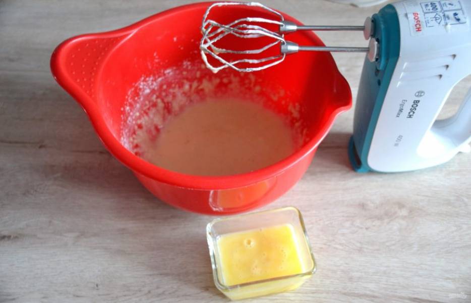 Растопите 30 грамм сливочного масла, добавьте к ним 2 ст. ложки теста, смешайте.