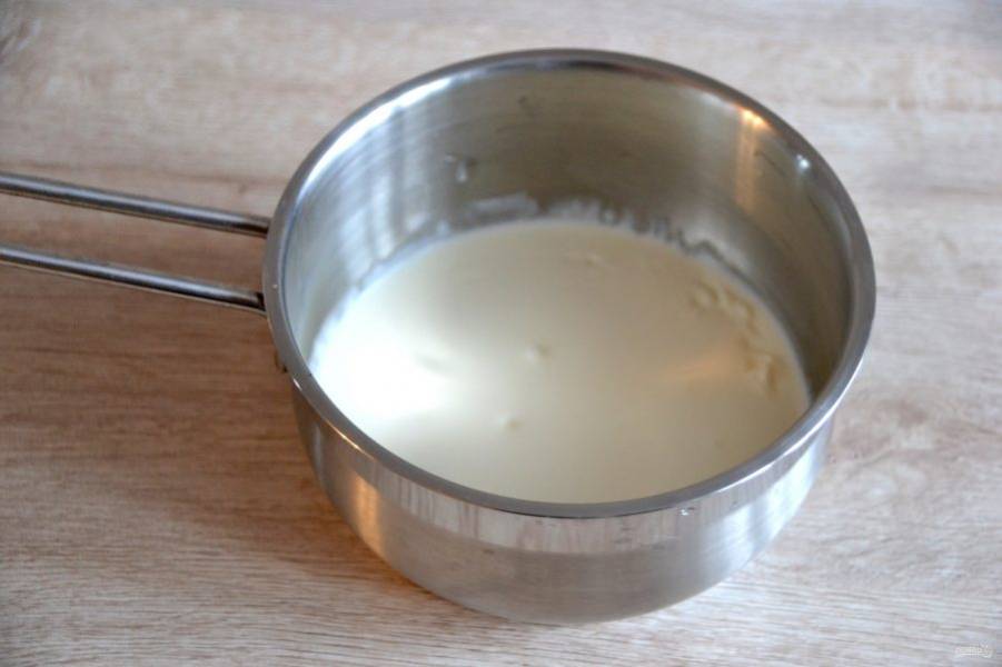 Влейте в сотейник 150 мл. сливок и нагрейте до 75 градусов.