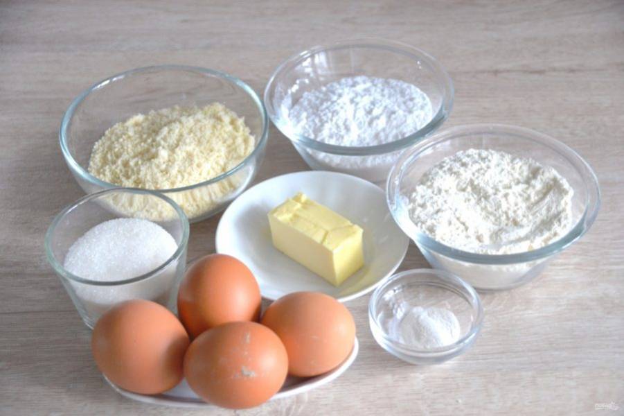 Подготовьте ингредиенты. В данном рецепте использован миндальный бисквит "Пан де жен", который был приготовлен ранее. Рецепт приготовления в последующих шагах.