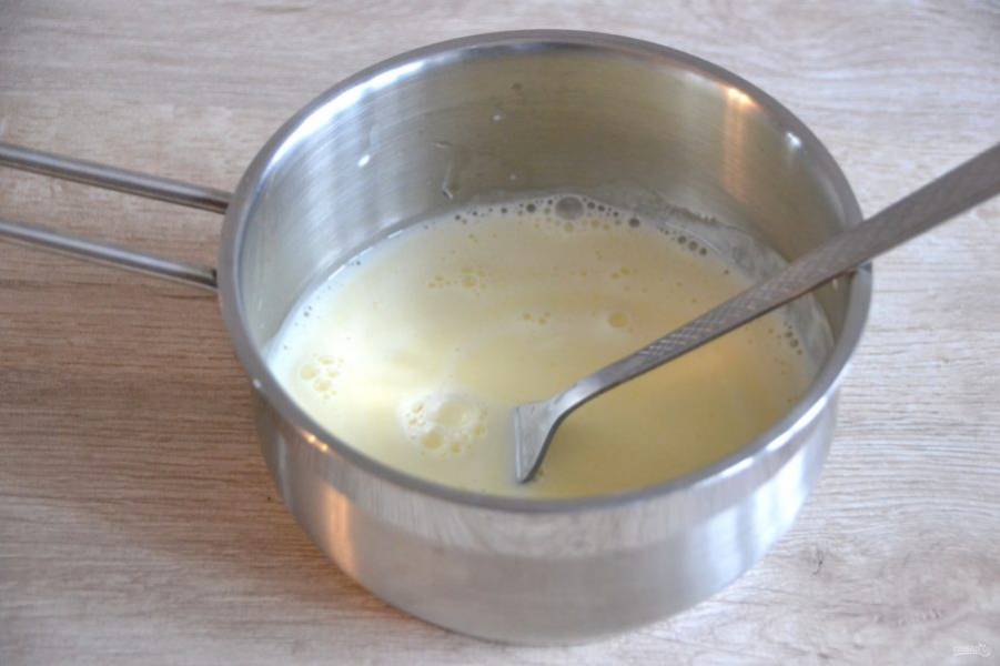 Снова перелейте массу из сливок и желтков в сотейник, при постоянном помешивании нагрейте до 85 градусов.