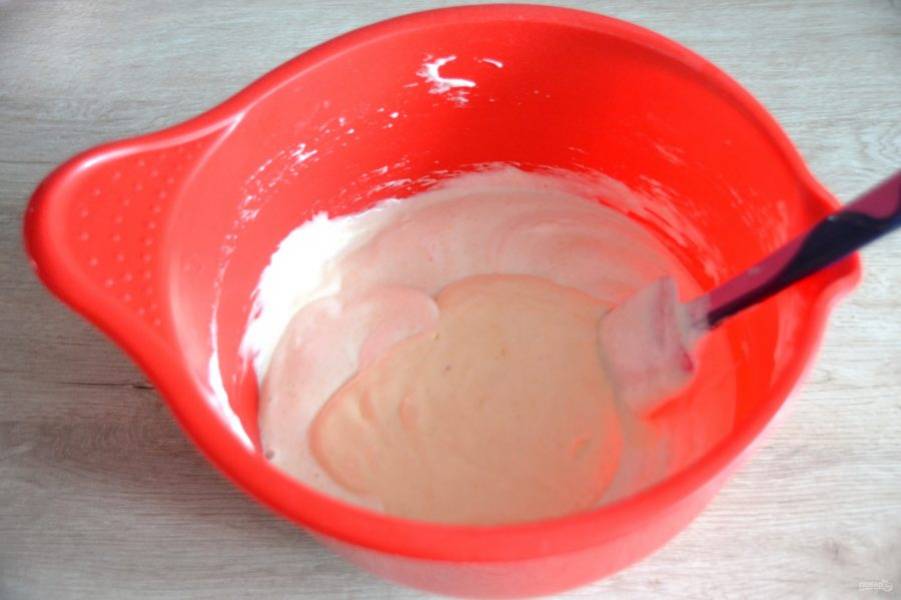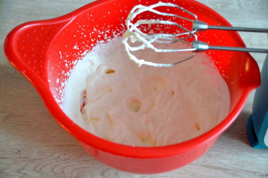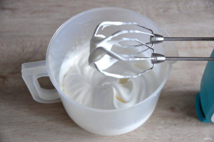 Взбейте 250 грамм оставшихся холодных сливок в пышную массу.