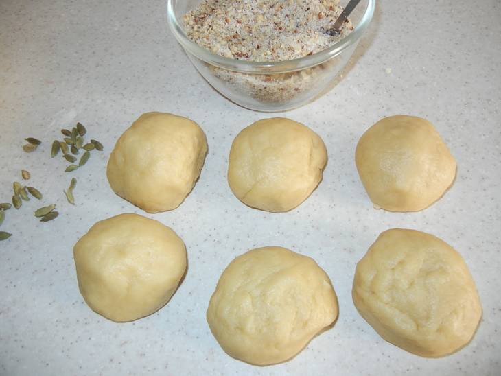 Измельчаем орехи ножом или в блендере. Добавляем кардамон и сахарную пудру.
