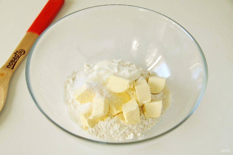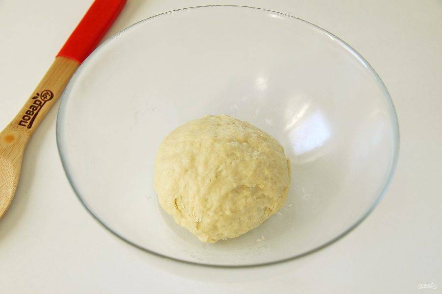 Замесите мягкое тесто, соберите его в шар, заверните в пленку и уберите в холодильник на 30 минут.