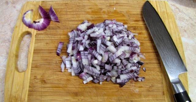 1. Как сделать мясной соус? Для начала необходимо очистить и нарезать мелкими кубиками луковицу.