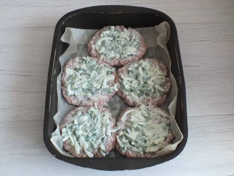 Разложите на блинчики подготовленный лук с петрушкой и майонезом #Махеев "Шпинат Базилик".