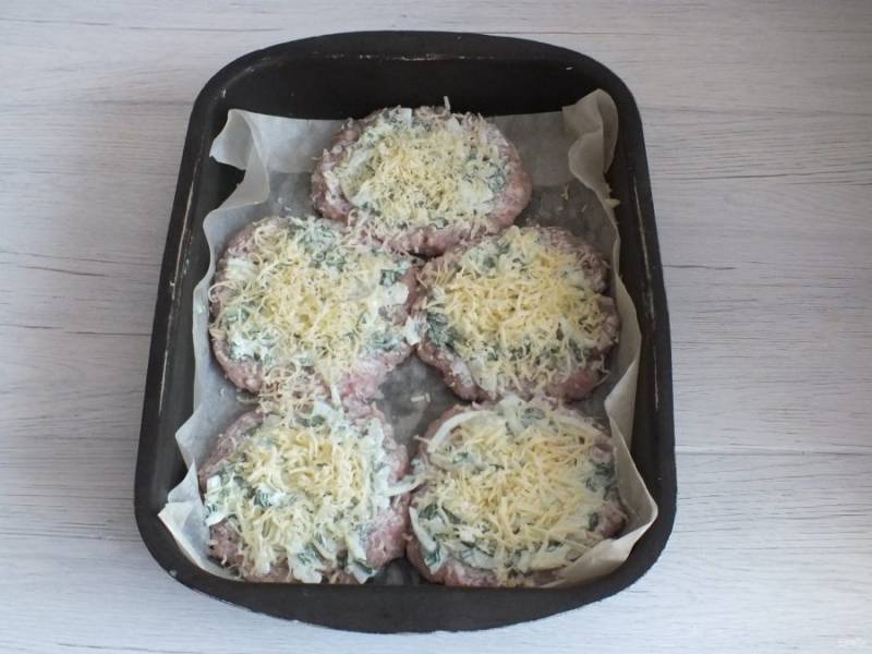 Сверху распределите тертый сыр. Поставьте в разогретую духовку на 20 минут.