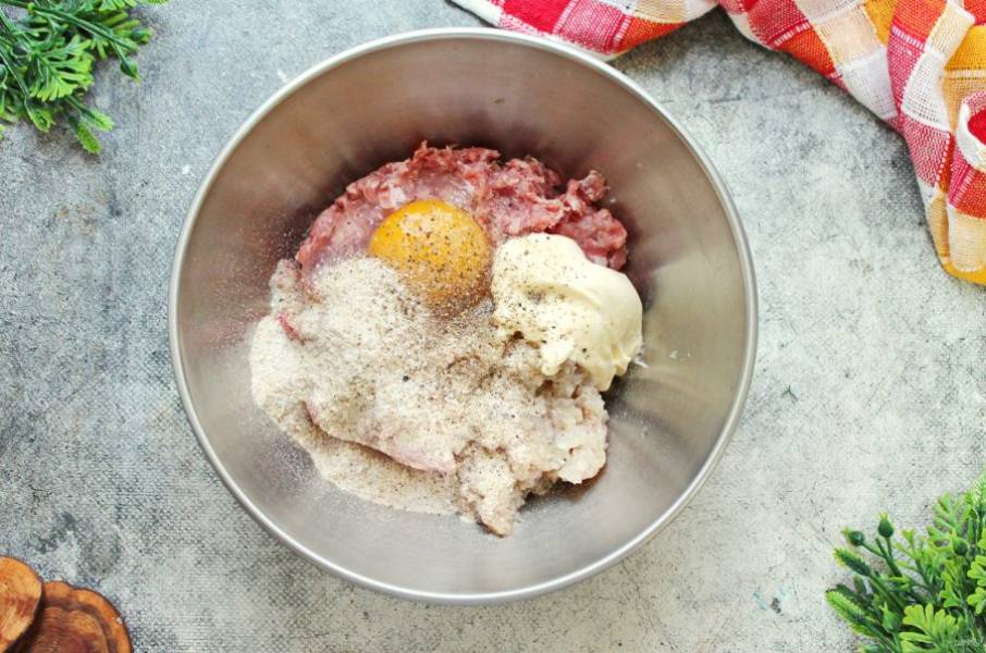 Все посолите, поперчите и добавьте сметану. Она придаст фрикаделькам более нежную структуру и сделает фарш более эластичным.