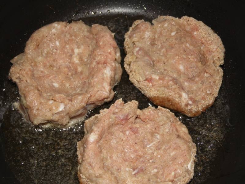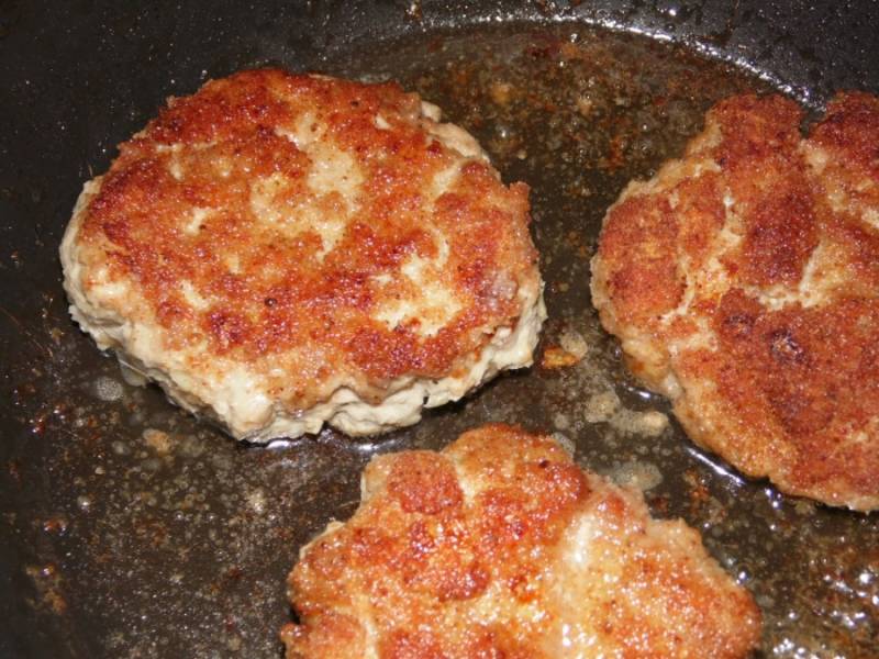 Макаем в сухари и обжариваем на разогретом подсолнечном масле по 5 минуток с каждой стороны.