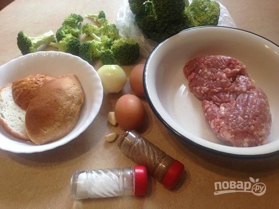 1. Вот все, что нам понадобится из продуктов. Фарш у меня смешанный - свинина с говядиной. Брокколи свежая, но можно использовать замороженную.