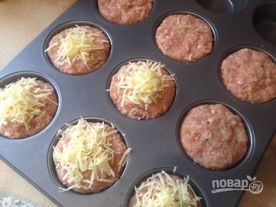 6. "Накрываем" брокколи фаршем, который выдавился с боков и посыпаем тертым сыром.