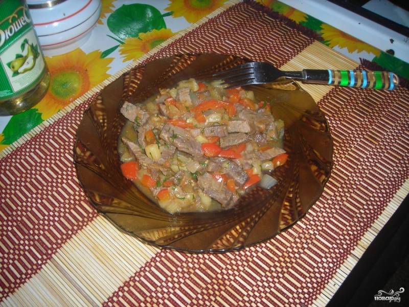 12. Когда овощи будут мягкими, можно отправлять к ним мясо.